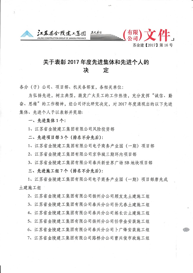 關于表彰2017年度先進集體和先進個人的決定