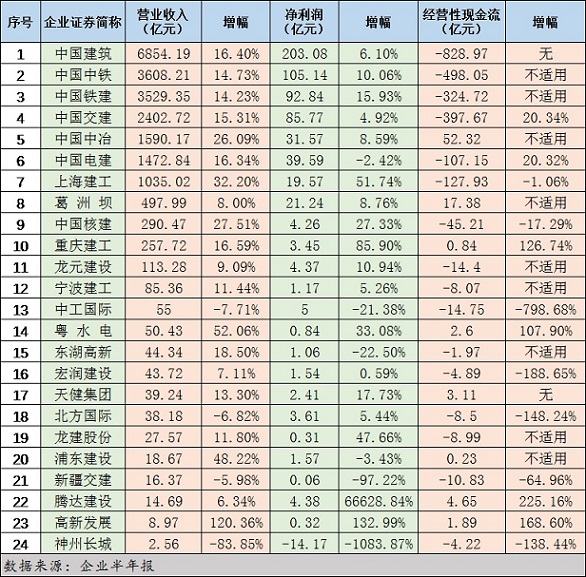 典型建筑業(yè)上市企業(yè)半年報(bào)透視:營收、凈利潤總體保持雙增長,“強(qiáng)者恒強(qiáng)”趨勢凸顯